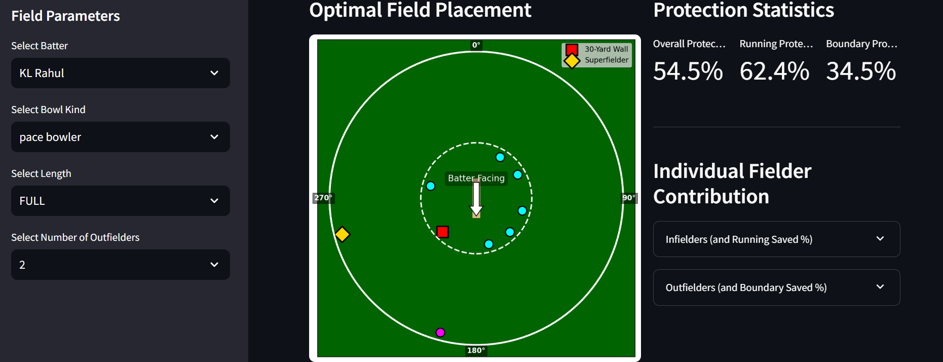 The recognition of special fielders again requires fielding data. It’s pretty straightforward to find out exact field positions with fielder names by feeding the current setup with fielder information, once this data becomes a reality.