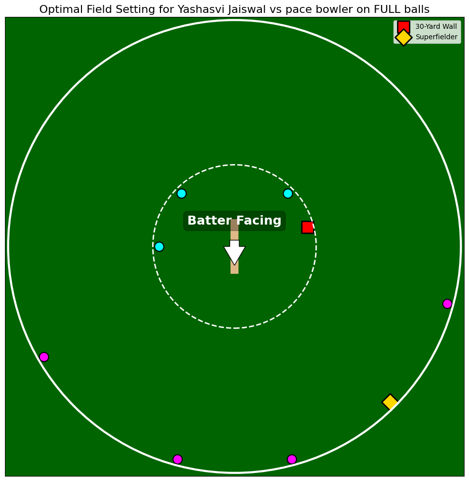 This happens for example when Jaiswal is provided with a full delivery. With an ability to drive along the ground as well as smoke flat sixes over covers, it becomes a hot zone for the fielding sides to take care of. This region as the algorithm suggests should be covered by a Superfielder.