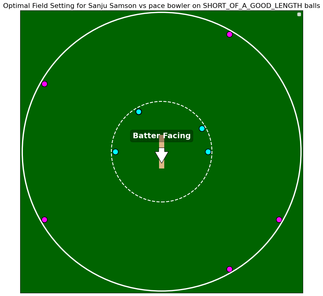 Samson on short of good is an underrated player of the cut shot. His efficiency of finding gaps when he jumps and cuts these deliveries is impressive. While the fielder waiting at deep mid wicket for the pull still covers his highest boundary percentage (20.57% boundary class coverage) being a six dominant region, the second highest boundary coverage is of the deep back point (18.86%). Following the same trend, a short third man position is effective against him as it covers 19.2% of his running class runs - the most among all infielders. I have also provided a link at the end where you can see this for different batters with individual fielder contributions.